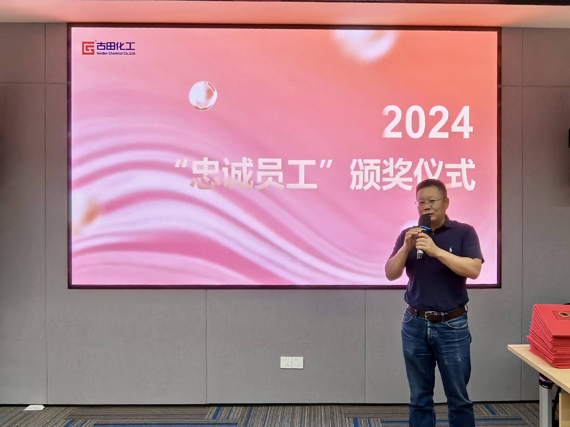 近期,古田化工再一次舉行了“忠誠員工”金幣頒獎儀式,以表彰那些為公司長(cháng)期服務(wù)的員工?,F場(chǎng)布置簡(jiǎn)潔,氛圍溫馨,沒(méi)有過(guò)多的華麗裝飾,但每個(gè)細節都體現了公司對員工的尊重與關(guān)懷。